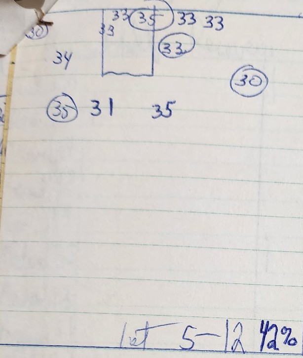First quarter shot chart from the Bedford regional game shows Larry going just 1-5 from the field. He would go on to have a very tough night. (Provided by Kevin Smith)