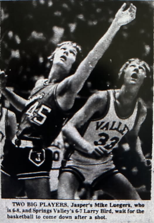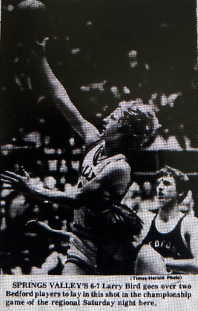 Bird hit only one out of five field attempts, two of the misses close around the basket. This was not the Larry Bird I had watched that year at the Valley game with Loogootee. Luckily, Beezer Carnes and Brad Bledsoe took up the Valley scoring slack.