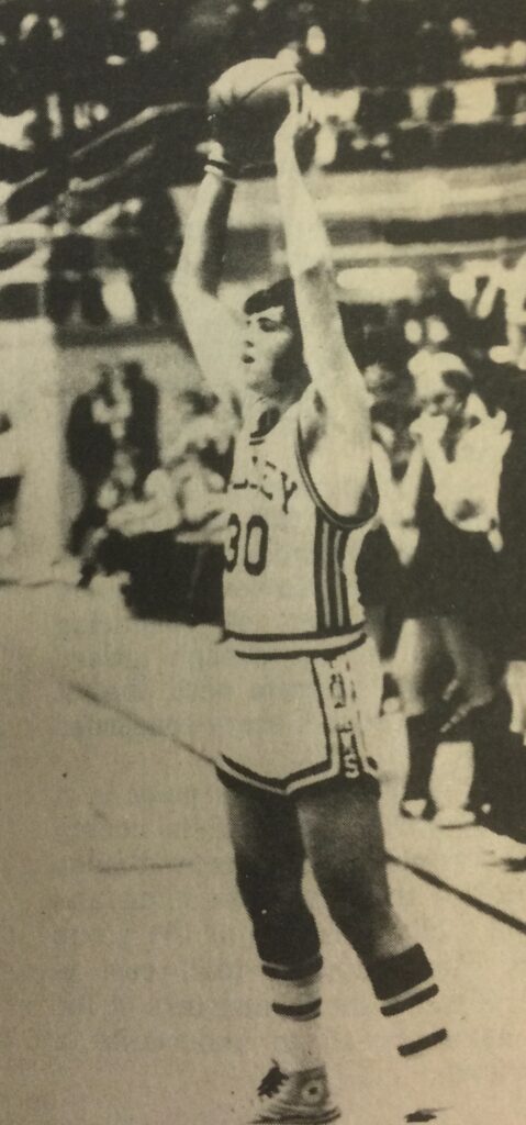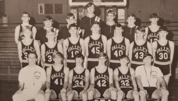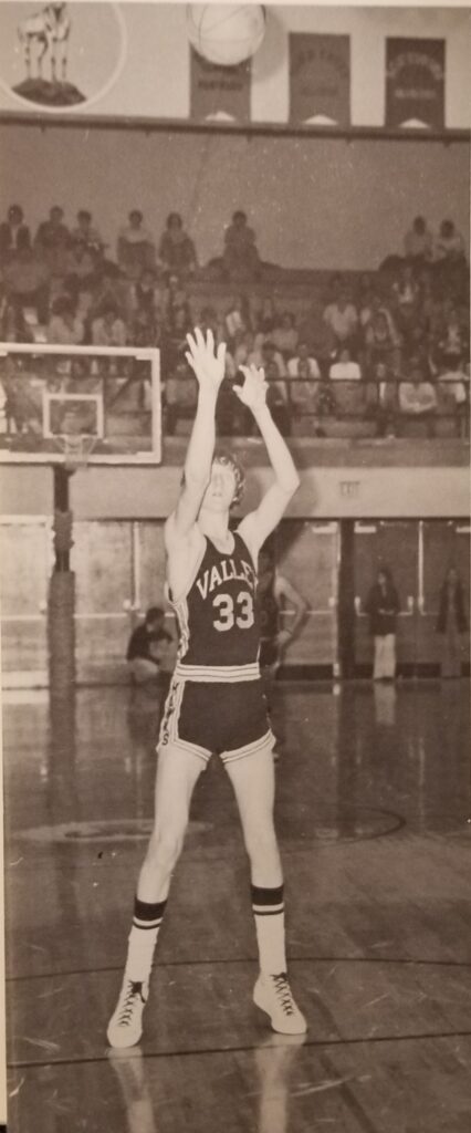John Carnes came back with a basket on a rebound, keeping Vallet ahead by six. John would collect six points in the fourth quarter. Bedford made another basket, then Beezer Carnes was fouled and given the dicey one-and-one bonus. Now I was really nervous, knowing what that pressure was like. Carnes hit the first and the Valley crowd went wild. He missed the second. Valley was still up by five with 2:38 left and the gym shaking with noise, filled with energy.