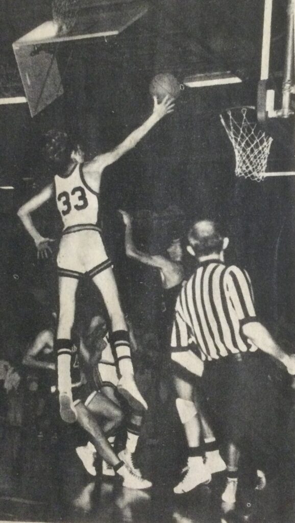 Bedford’s Jim Pentzer scored the winning one-and one foul shot and effectively stopped Larry Bird from scoring in the key fourth quarter of the Washington regional in 1974. (Bedford Times Mail)